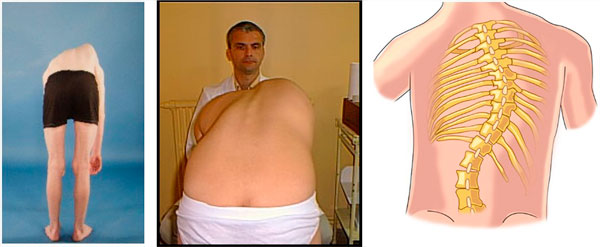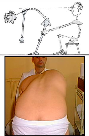 La Escoliosis produce la formación de una giba torácica (prominencia de los arcos costales en un lado del tórax) y una giba lumbar (por el deslizamiento de los músculos que están encima de estas vertebras).